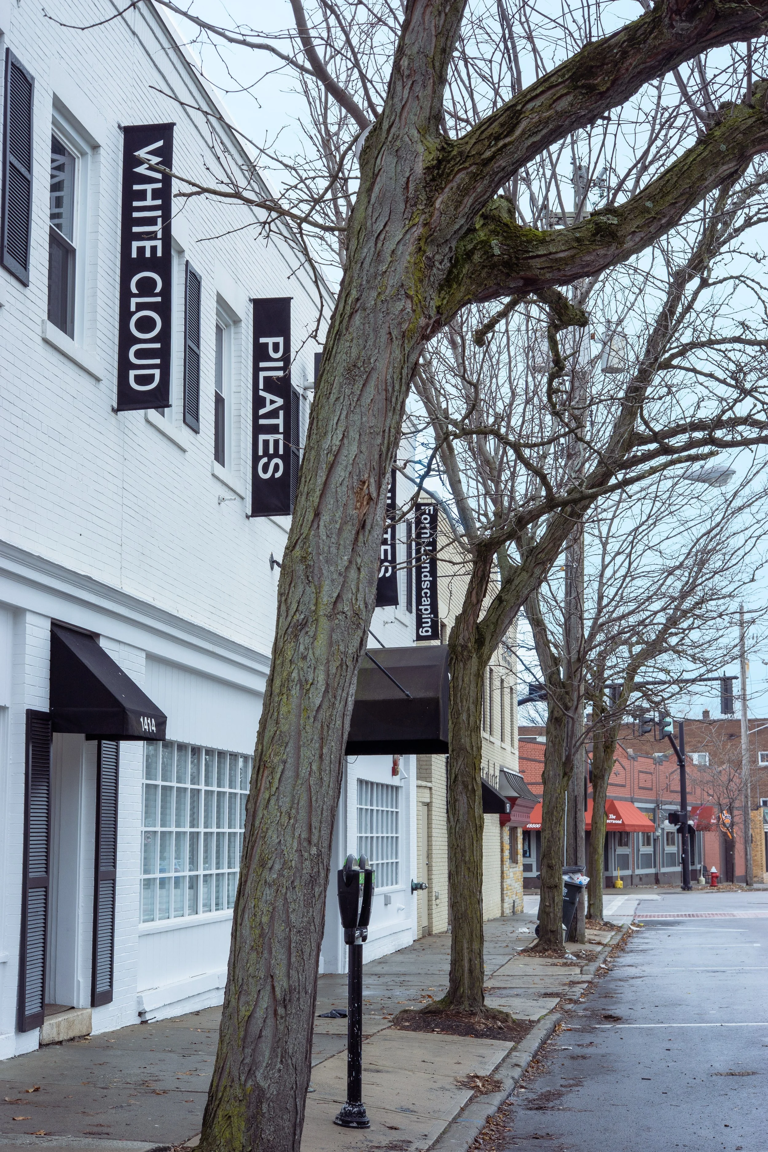 White Cloud Pilates West is located at 1414 Riverside Drive Lakewood, on the corner of Detroit Rd. and Riverside Dr. in the old Bonnie Bell building. Our entrance is under the awning with “1414” on the front, and is to the left of Vosh Nightclub. Free parking is available behind the building (large Georgetown lot) as well as metered parking on the street. Once you enter the door we are at the top of the steps.
